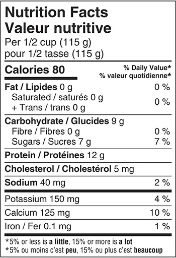 Skim milk, Cane sugar, Water, Vanilla extract, Pectin, Vanilla bean powder, Lemon juice concentrate, Active bacterial culture.